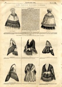 During this time period, newspapers rarely included illustrations in their pages, let alone pictures relating to the Jewish community. One exception was the Illustrated News which printed an image of a synagogue (Congregation Rodeph Sholom) on Clinton Street on the Lower East Side, on May 14, 1853. A curious observation in the accompanying article, “The New Synagogue” states: “The principal portion of their [the Hebrews] service is chanted – one of the essential qualifications of a leader being a thorough knowledge of music, which art is probably more cultivated among the Jews than among any other race in the world.”This magnificent, historic, building still exists today and houses Congregation Chasam Sopher. A fascinating aspect of doing research in the newspapers is the context they provide – other news events of the day, and advertisements such as this one: did any of the women attending the synagogue at the time wear any of these fashions?